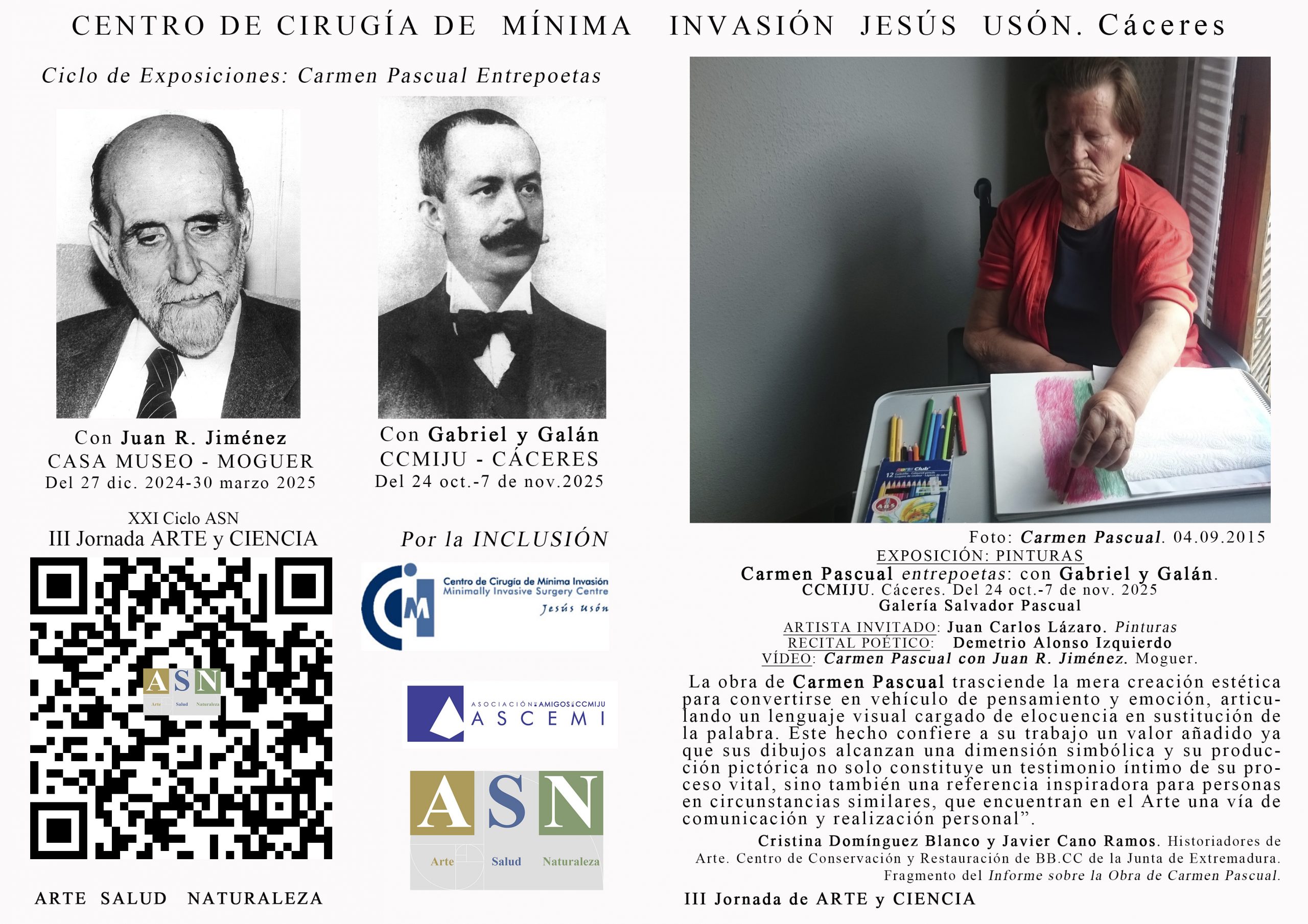 El próximo 24 de octubre de 2025, el Centro de Cirugía de Mínima Invasión Jesús Usón (CCMIJU) de Cáceres acogerá la III Jornada de Arte y Ciencia, bajo el título “La plasticidad neuronal a través del arte: prevenir, rehabilitar y educar para la inclusión”, en el marco del XXI Ciclo de Arte Salud Naturaleza. El […]