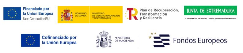 El Plan Complementario de Biotecnología Aplicada a la Salud forma parte del PERTE para la Salud de Vanguardia y está cofinanciado por el Ministerio de Ciencia, Innovación y Universidades con fondos de la Unión Europea – NextGenerationEU, el Plan de Recuperación, Transformación y Resiliencia (PRTR-C17.I1), y el Programa Operativo FEDER 2021–2027 en Extremadura.