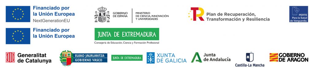 El Plan Complementario Biotecnología Aplicada a la Salud, integrado en el marco del PERTE para la Salud de Vanguardia, ha sido cofinanciado por el Ministerio de Ciencia, Innovación y Universidades con fondos de la Unión Europea NextGenerationEU, el Plan de Recuperación, Transformación y Resiliencia (PRTR-C17.I1) y el Programa Operativo FEDER 2021-2027 en Extremadura.