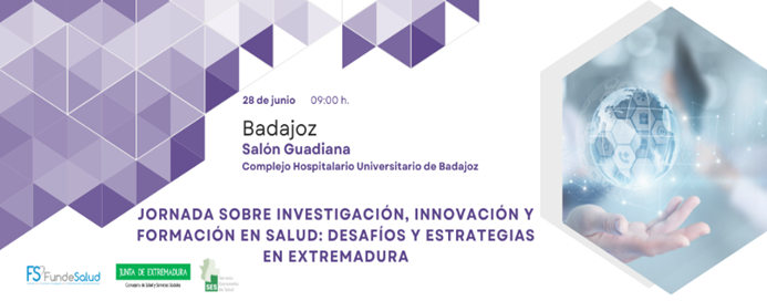 FundeSalud organiza la Jornada sobre Investigación, Innovación y Formación en Salud: Desafíos y Estrategias en Extremadura, que tendrá lugar el viernes 28 de junio 9.00-14.30 H en el Salón Guadiana del Complejo Hospitalario Universitario de Badajoz, Extremadura.