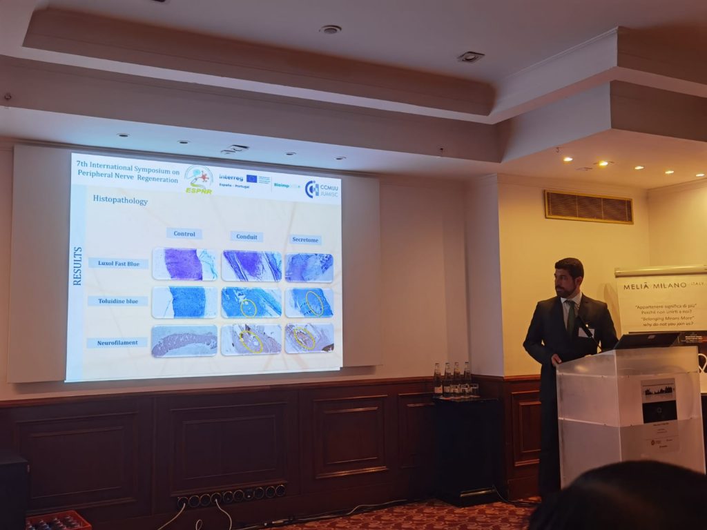 El Dr. Vela ha presentado una comunicación oral titulada Experimental model of nerve regeneration with cell therapy and conduits y dos pósteres: Poster 1: Peripheral nerve conduits an alternative to autografts? y Poster 2: Reconstructive microsurgery of the peripheral nerve, a preclinical view, trabajos desarrollados en el marco de Bioimpace+.